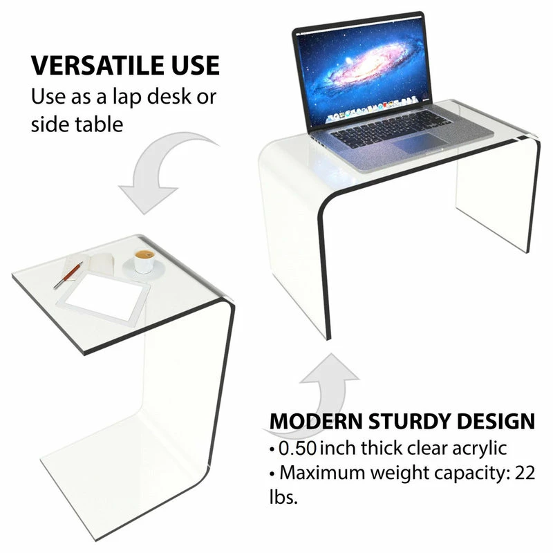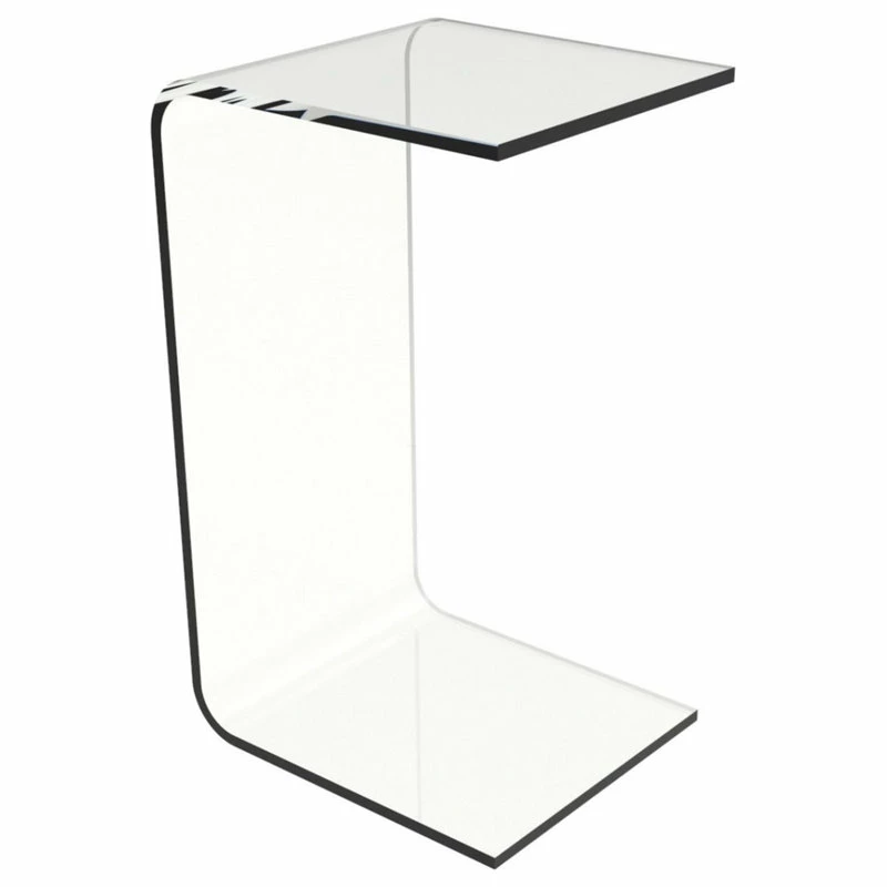 The Acrylic Side Table by Lavish Home is a beautiful and practical addition to your home dΓ©cor. This C-style furniture piece can be used vertically as an end table, and horizontally as a lap desk. Use it to keep a pretty plant or picture frame in the living room, as a spot to set a snack plate and a coffee cup, or as a convenient place to work on your laptop. Made with clear acrylic, this sofa table takes up little visual space, and is a modern, versatile choice for any home.