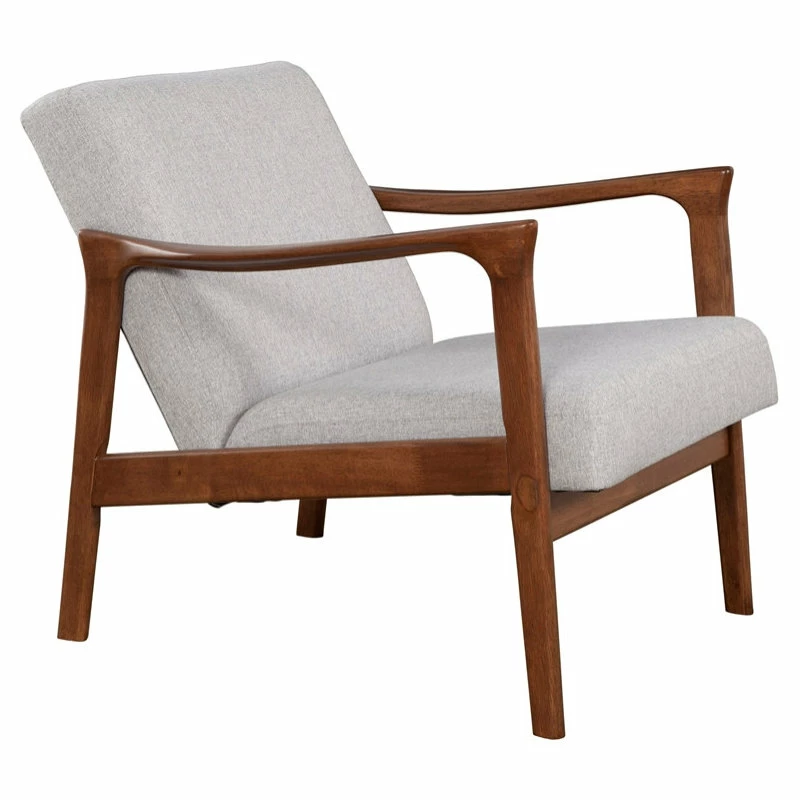 The Zephyr Slate Lounge chair features a solid wood frame. Its comfortable foam padded seat and durable Light Gray fabric upholstery makes it perfect for leaning into a boisterous conversation or reading your favorite book. Add the matching footrest and quietly contemplating your next move. With a warm Medium Brown finish, the chair accents any room setting.