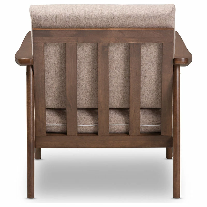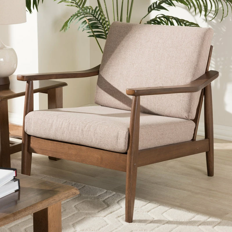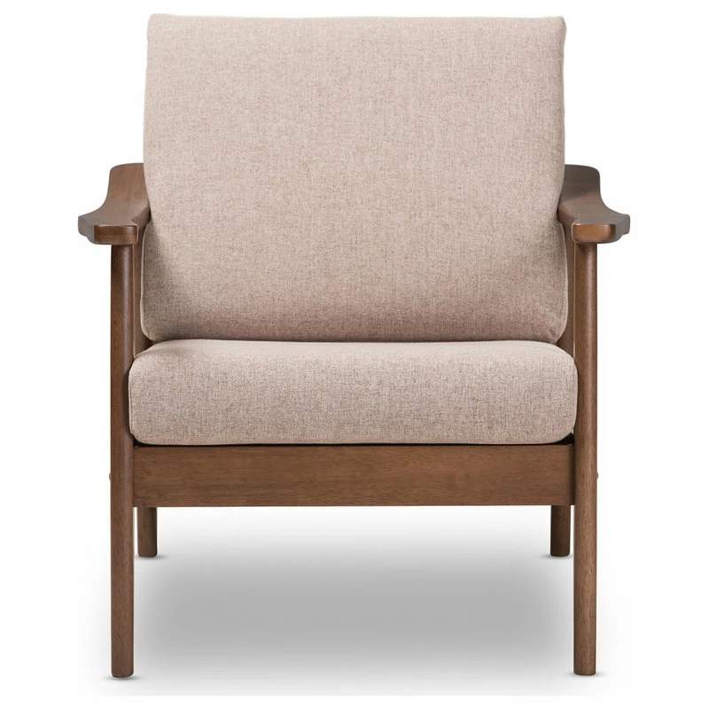 Wholesale 🔔 Baxton Studio Venza Mid-Century Modern Walnut Wood Light Brown Fabric Upholstered Lounge Chair 🎁