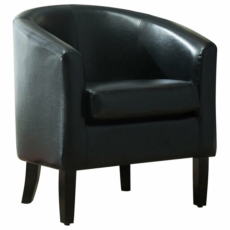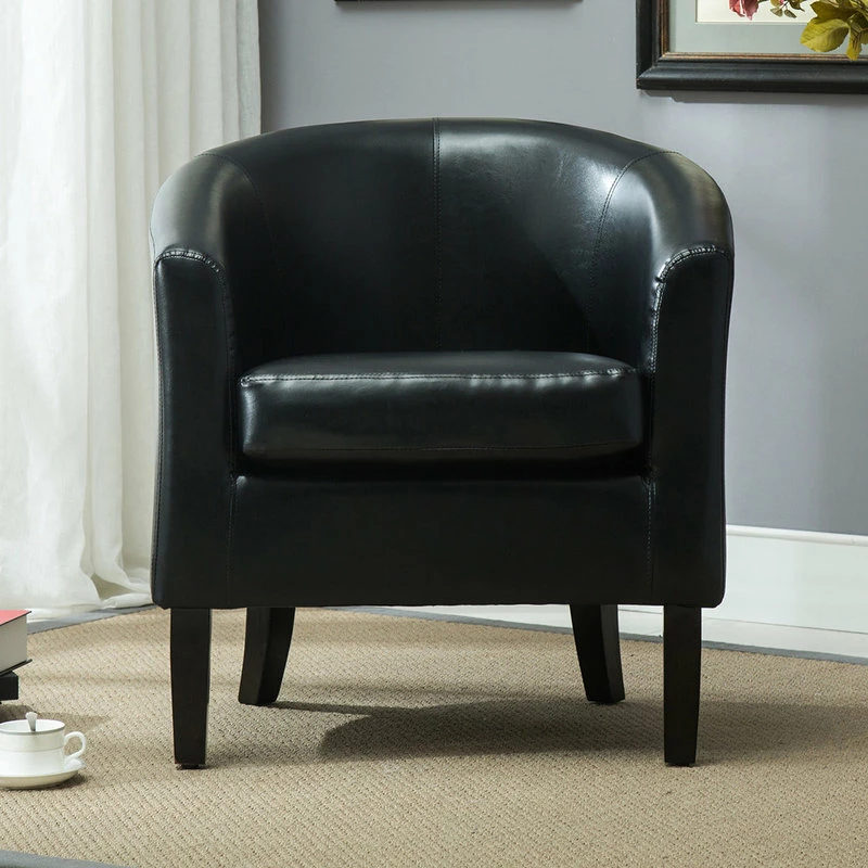 Add stylish extra seating with this Belleze faux leather club chair. Boasting a sophisticated design, this contemporary tub chair features flared arms to provide your guests with a sturdy, comfortable place to rest their arms throughout their visit. The flared legs of the piece add an additional layer of style to the chair and make it easy for you to clean underneath it. Add a touch of elegance to any room with this beautiful accent chair from Belleze. With top stitching for durability, foam padding for comfort and solid wood legs for strength, this chair is sure to be a family favorite.