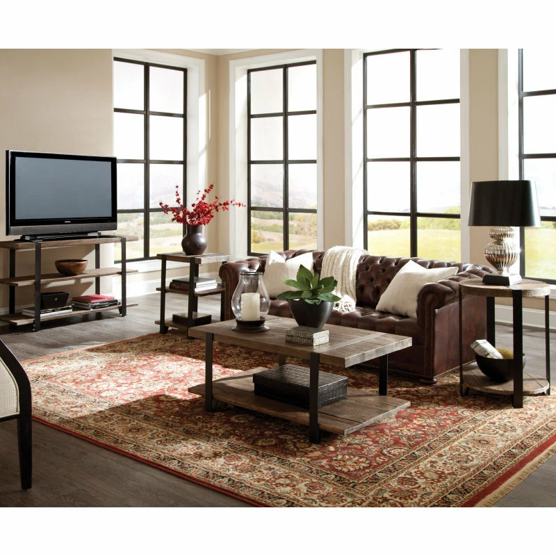 Featuring exquisite workmanship of solid wood tops with wrapped metal strap and metal legs, the Modesto collection furniture will last for years to come. The reclaimed wood finish highlights the cracks, knots, and wood grain that is unique to each piece. Modesto 2-Shelf End Table with reclaimed wood and wrapped metal strap will add warmth to any decor. The rustic, natural finish and design provide an industrial element to your room. Add your favorite lamp, books, magazines, or knick knack to complete your decorating style.