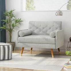 Outlet โญ GDFStudio Nour Fabric Mid-Century Modern Club Chair, Light Gray/Dark Walnut ๐