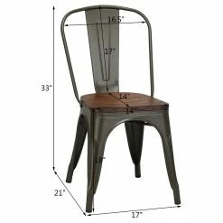Best Sale ๐ Costway Set Of 4 Style Metal Dining Side Chair Wood Seat Stackable Bistro Cafe ๐ฏ