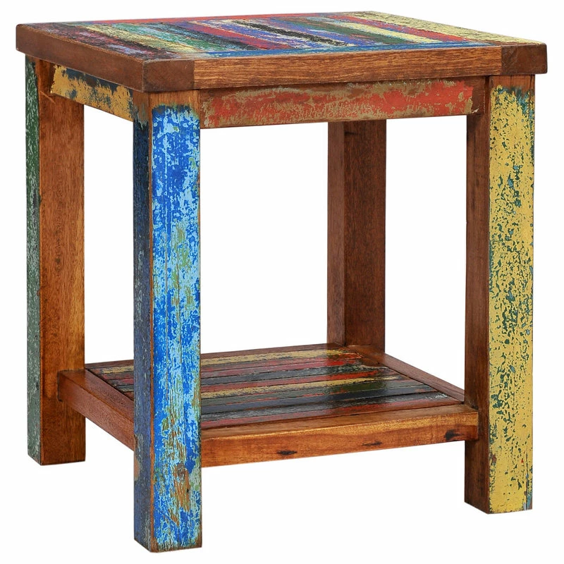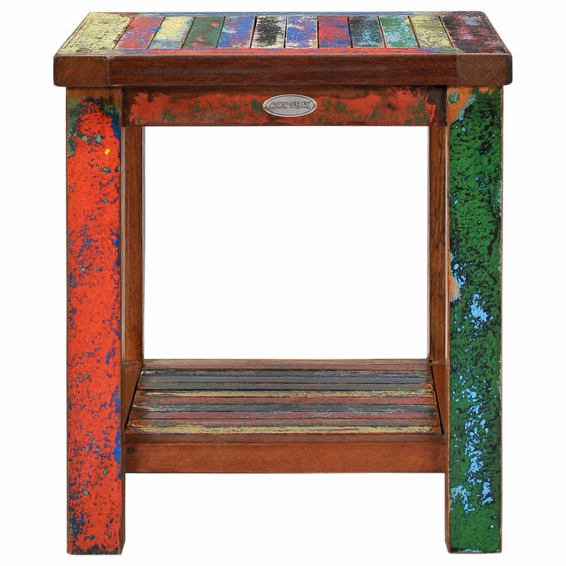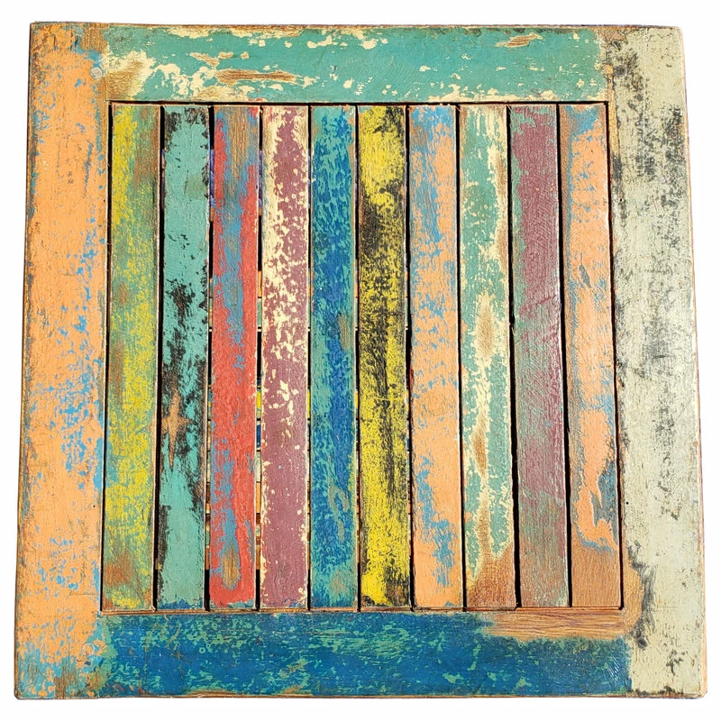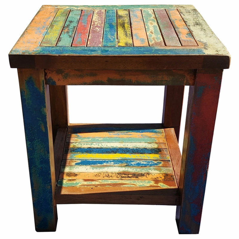 The skiffs used to make these pieces have been used for many years to catch fish that would be sold later in the day to the local markets. The wide variety of colors in the top make them easy to use in a space that is already full of color, or this side table may just be that special pop of color you have been looking for. No matter where you live, this side table will be a welcomed addition to your current decorating style.