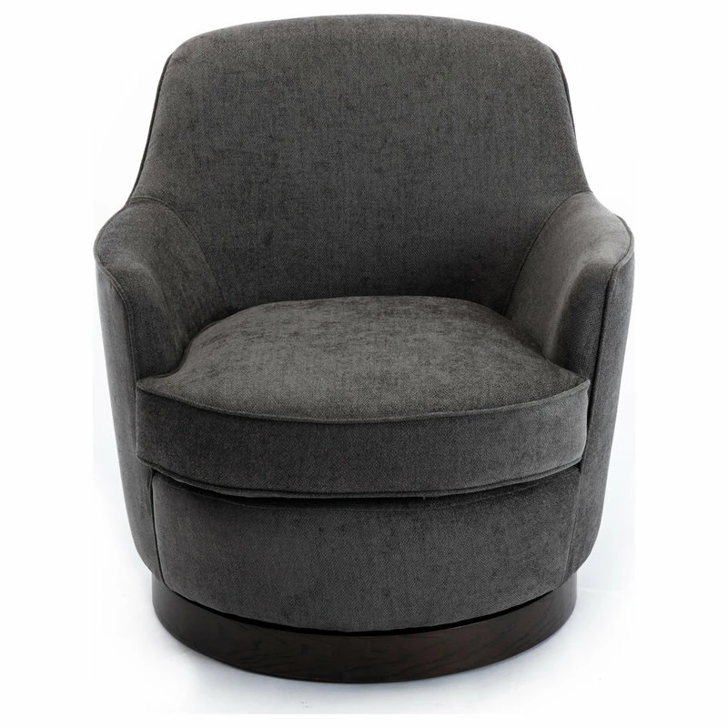 Complement your home decor with the versatile and comfortable design of the Reese Wood Base Swivel Arm Chair. Constructed with a sturdy wood frame and upholstered in an easy to clean durable fabric, this swivel chair with reversible seat cushion will create a cozy, casual look for years to come. Available in your choice of Oatmeal, Cadet Blue or Charcoal.