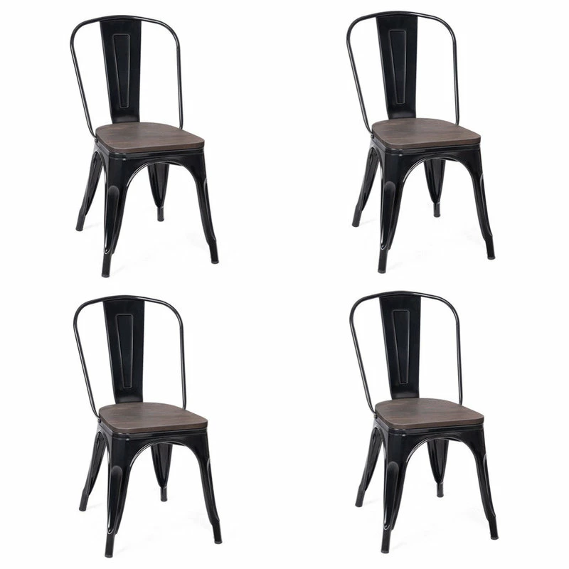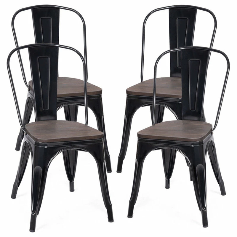 This set of metal chair could give you very deep impression with its high quality of heavy-load metal frame and elm cushion. Simple and practical, you can apply it into anywhere you can imagine, such as living room, dining room and your kitchen.4 rubber feet protect your floor from scraping.Ergonomic back give you very relaxed feel. Stackable and compact design for space saving storage. 4 in 1 set at great price. Do not hesitate to put them in your cart!