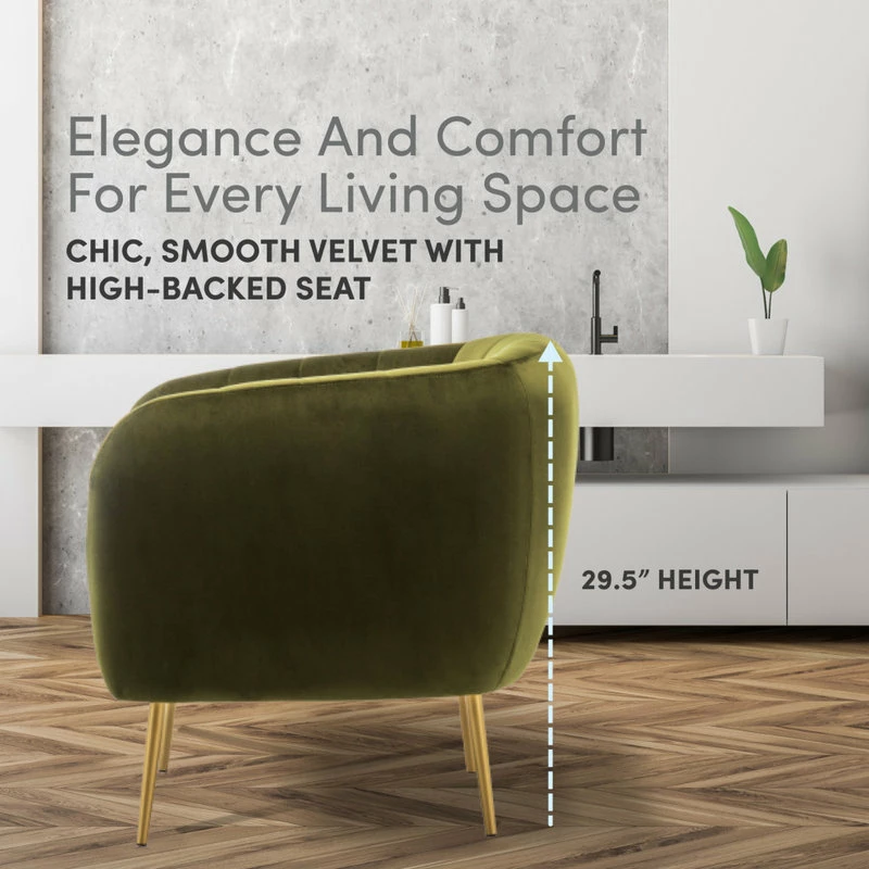 eLuxury’s Channel Accent Chairs are crafted with smooth velvet and faux leather material and striking gold/black metal legs to give off a chic mid-century modern feel and sophistication. Designed with thick-layered foam and stain-resistant and durable fabric, these chairs are made to withstand years of use. Whether you’re looking for another place to curl up or a decorative accent to your space, these accent chairs are the perfect solution.