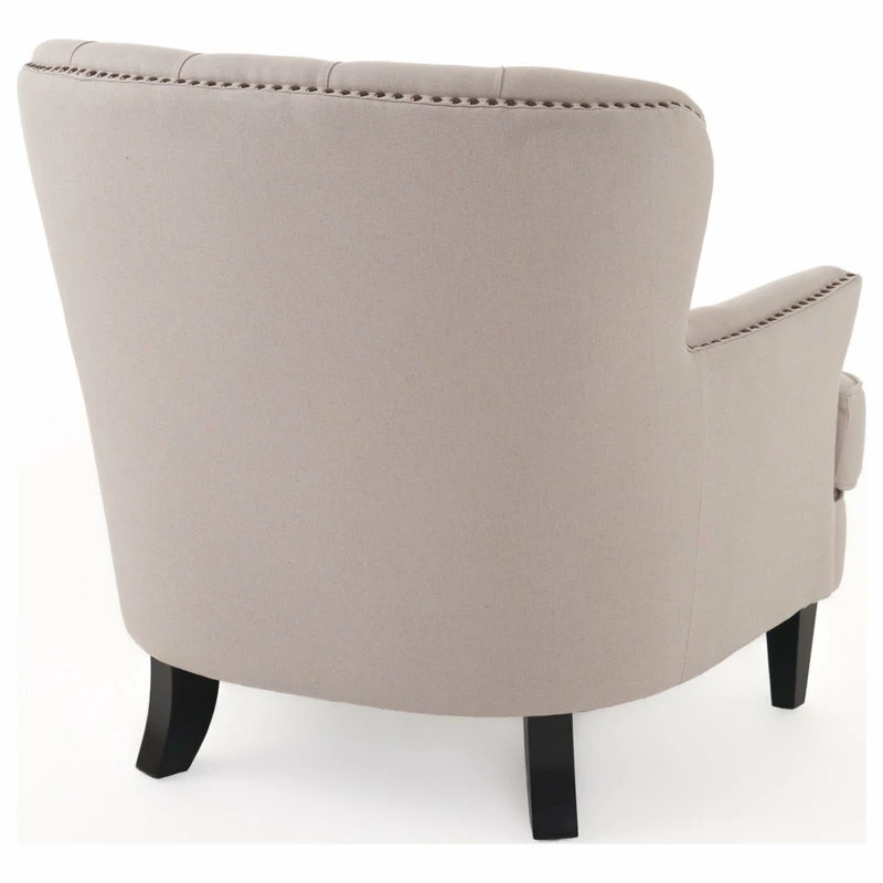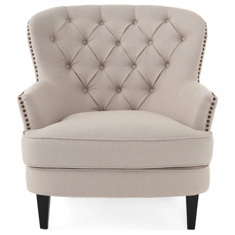 Drawing from cozy yet upscale aesthetics, our club chair is the perfect addition to your interior space. This comfortable seating will become the family favorite with its comfy upholstery, flared armrest design, and tapered wood legs. Finished with a stunning nailhead trim, this club chair is an ideal space to read your favorite book or watch a movie in the comfort of your own hom