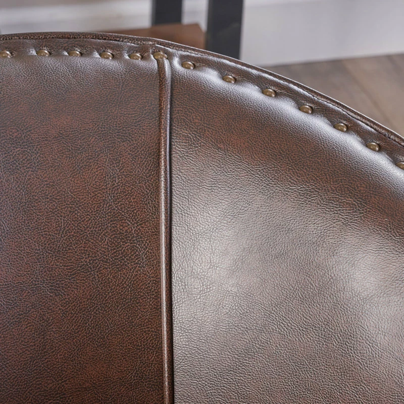 The Carlton Club Chair is a fusion of modern style with the luxury of fabric or bonded leather. Crafted with only the highest quality materials, our soft bonded leather or plush soft fabric with studded accents, this club chair provides extra comfort and an entirely new level of sophistication.It catches your eye with its curved arms and back, along with the chrome studs along the front, bottom, and sides. The chair’s composition is completed with tapered legs in espresso finish.