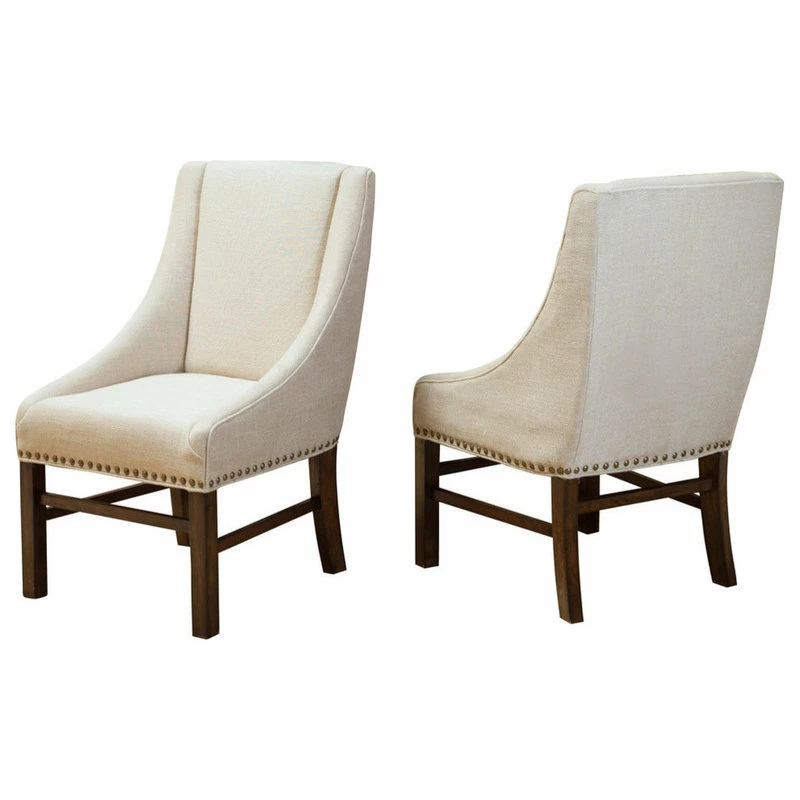 Our eye-catching dining chair set is a versatile solution for any home, exceeding all of your needs in both stylish form and function. Featuring an exquisite studded trim, plush upholstered seating, and a sturdy wooden frame for outstanding durability, each chair uses a mix of materials to emphasize the overall contemporary style of the piece. Our refined dining chair set is finished with gracefully sloped armrests and a complementing leg finish, making these the perfect balance of stunning style and convenient functionality.
