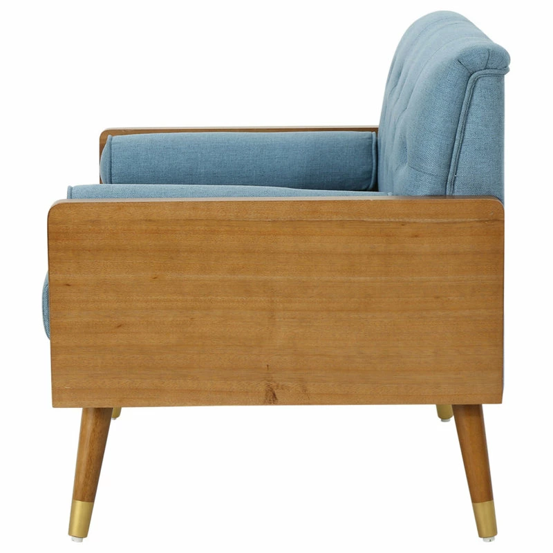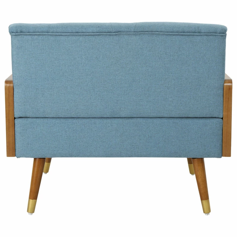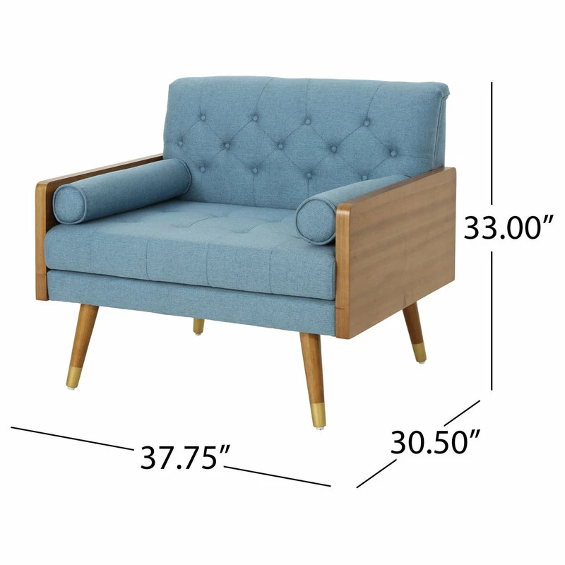 Turn your living room into the stylish and sophisticated space you’ve always wanted with help from this elegant club chair. The dramatic silhouette, wood-finish frame, and tapered, splayed, gold-tipped legs give your space all the unique and statement-making charm it deserves, whether you gravitate toward a modern or retro design aesthetic. Smooth upholstery makes a sophisticated statement, while button-tufted diamond stitching and two bolster-style accent pillows complete the look impeccably. Give yourself a chic and cozy new sitting spot with this charming chair.