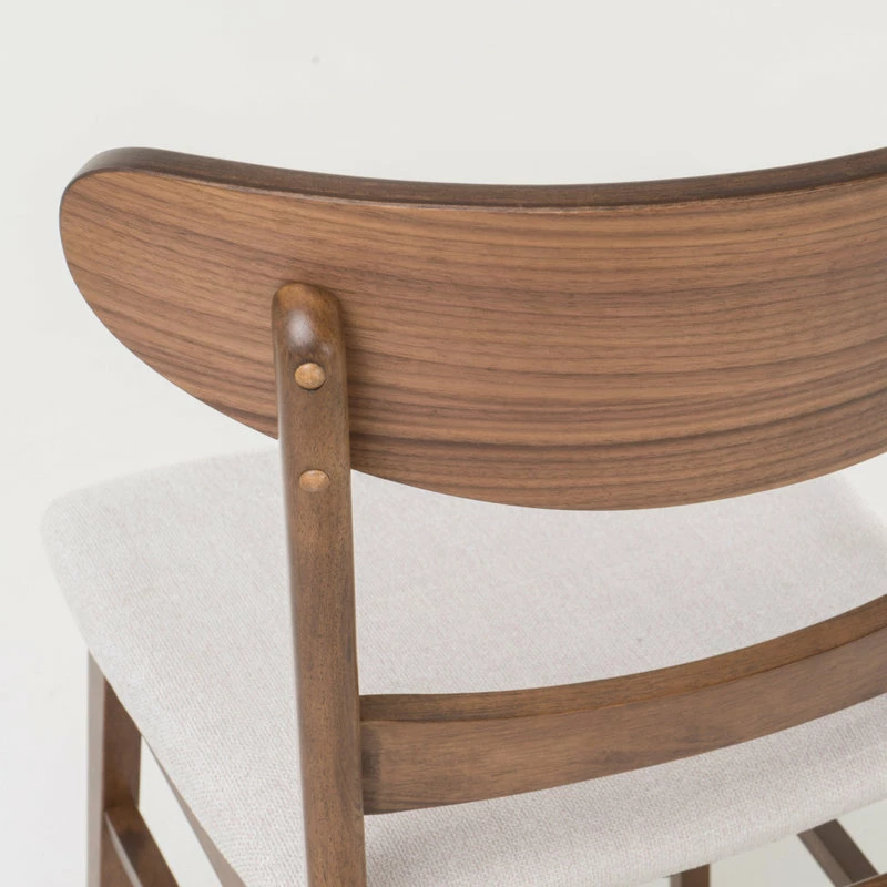 Mid-century modern design makes a stylish appearance in your dining room with these lovely dining chairs. These striking chairs feature soft, upholstered seats and beautifully-finished wood frames. Stunning curves and splayed legs bring even more intrigue and depth to the chic aesthetic. The combination of textures and colors adds dimension to any well-edited space. Fill your dining room with retro charm by pairing these bold and unique chairs with an equally charming dining table, a bold rug, and a coordinating sideboard.