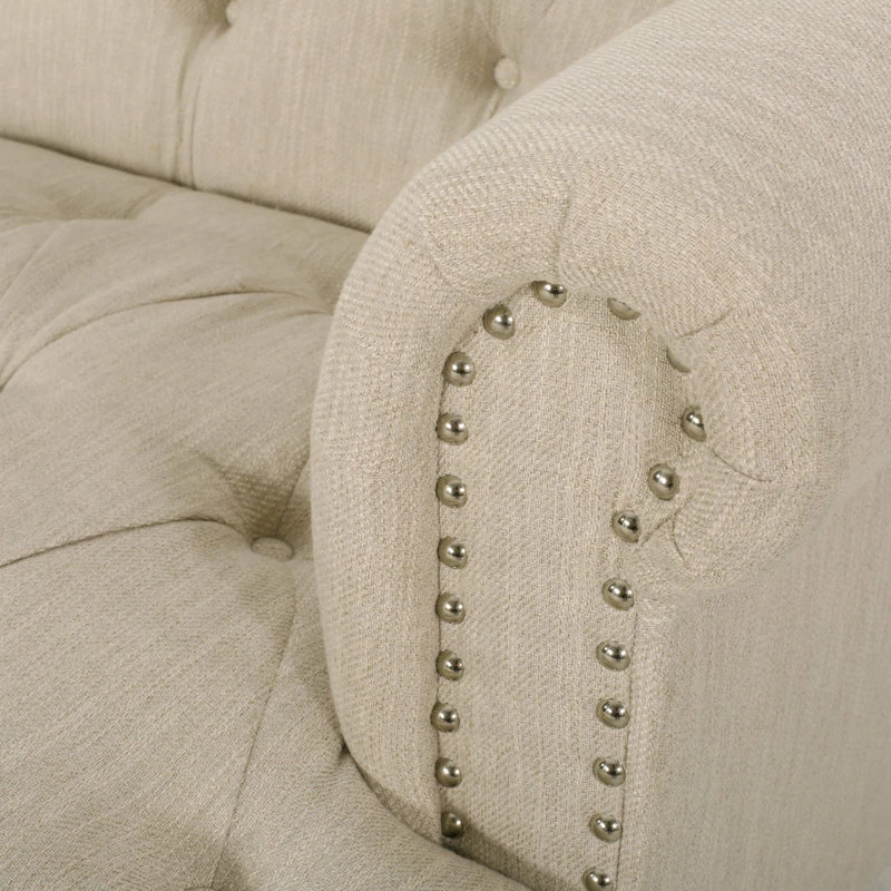 NAILHEAD ACCENTS: Expertly styled, this sofa has tasteful nailhead accents on the front end of the scrolled arms to draw the eye in and complement the deep button tufting. Each nailhead is individually applied for a beautiful, hand-crafted touch.