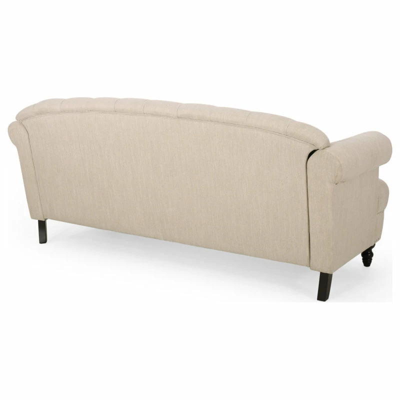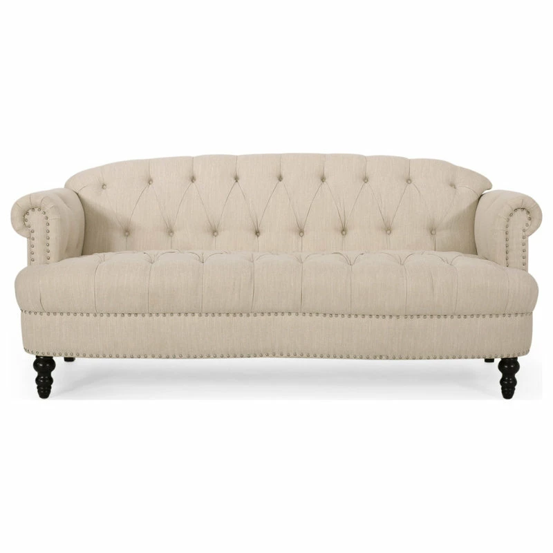 Highlight your living room decor with a sofa that will tie your space together with sophisticated style. With its classic design and traditional elements such as deep button tufting, rolled arms, and nailhead accents, our sofa will give you the best view of your TV or fireplace. Featuring smooth upholstery, this sofa stands as a streamlined statement piece that can change the whole flow of your living room, creating an open, clean space. Finished with beautifully turned legs, our sofa provides an elegant touch to any room.