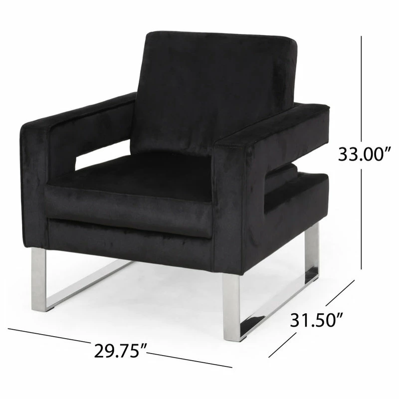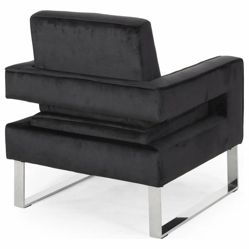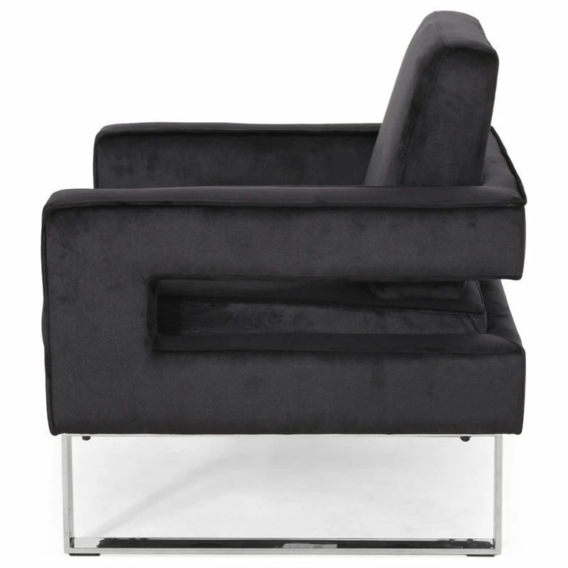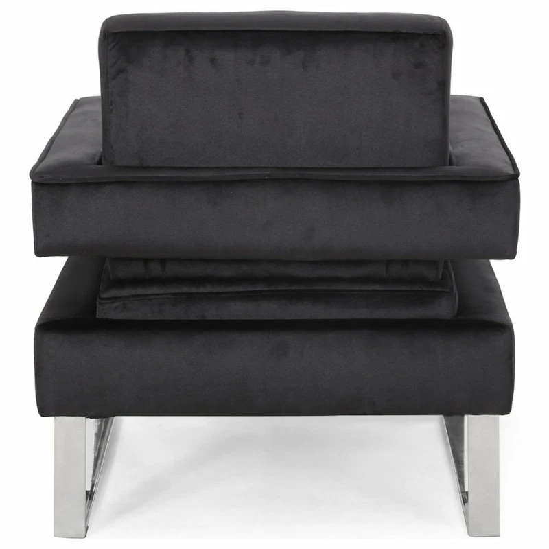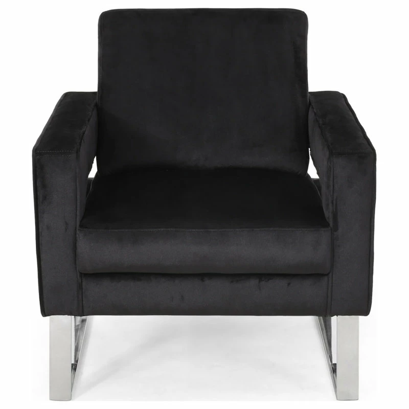 MODERN GLAM: Our club chair showcases dazzling silver accents and velvet upholstery that pair seamlessly with clean, straight lines for a luxurious modern glam look. Complemented with precise angles and minimalistic structure, this chair brings a sleek touch to any decor.