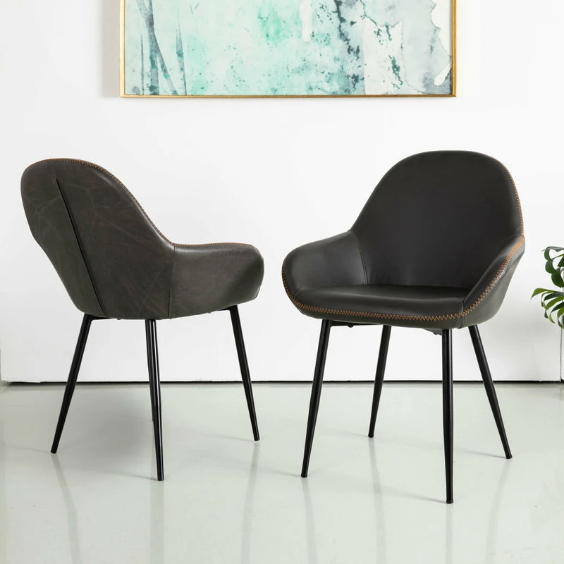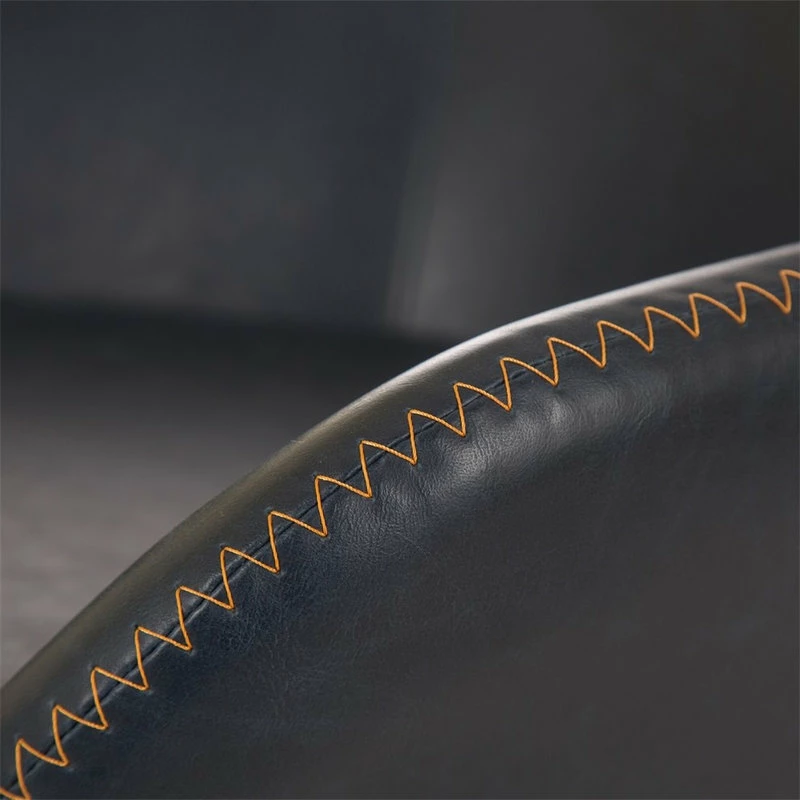 This Mid-Century Modern vintage Navy Blue leather dining arm chair is a stylish one that is sure to impress, with its unique design that attracts the eye, it will get conversation flowing. The winged back makes anyone sitting at your dining room table feel both important and empowered, while still giving them a comfortable seat on which to enjoy your food.