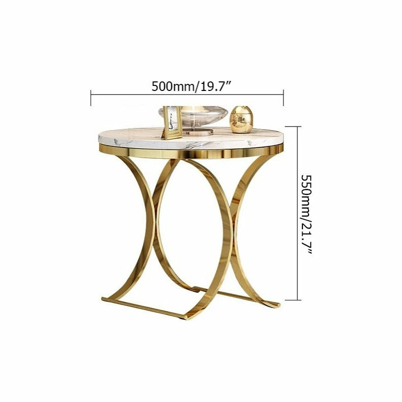 - Material: Natural Stone + Marble Veneer (top), Stainless Steel (base)