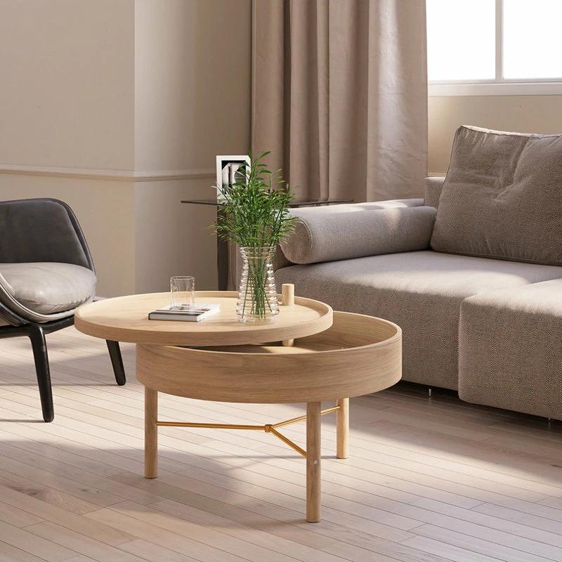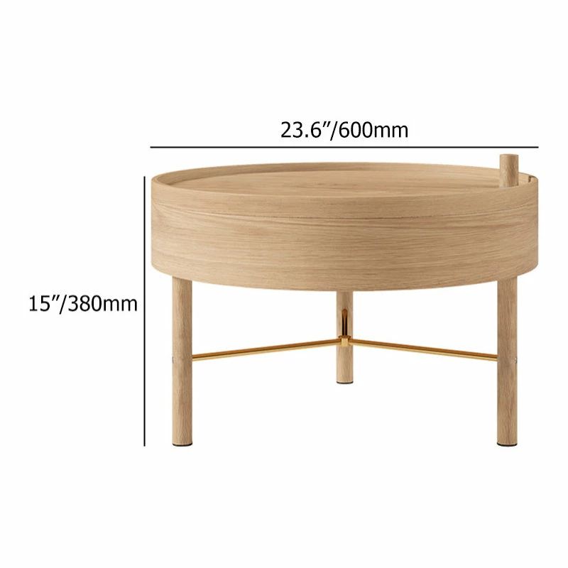 Add style and convenience to your living room with this versatile round coffee table. Minimalist yet stylish, it will complement a vast array of decorative schemes. Featuring a rotating top design, it boasts a hidden storage area underneath the tabletop to tuck away clutter. High-quality wood construction provides lasting performance, while the refined metal cross-brace makes it more stable and inviting. Bring playful experience and multi-function in your living space, this round coffee table will make a statement in your home.