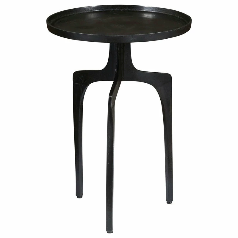 With its tray-style top and tripod base, the Natalie accent table is a saucy addition to your home. The lightweight, aluminum table is made of metal and finished in a slightly distressed black.