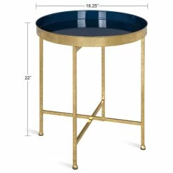 Cheapest 👍 Uniek Celia Round Metal Side Table, Gold Navy Blue 👏