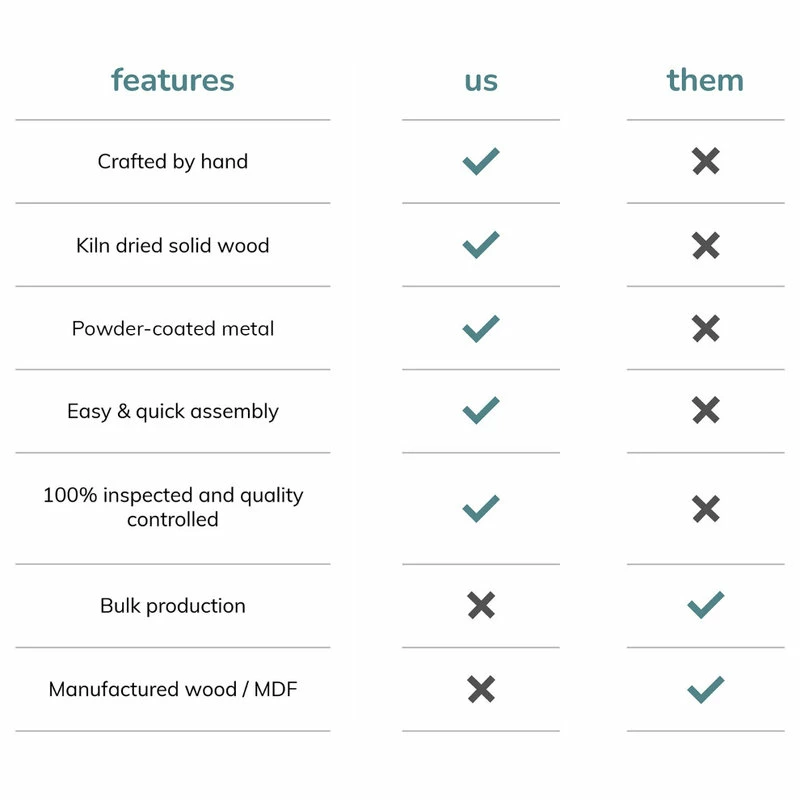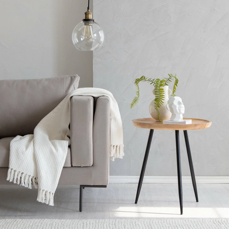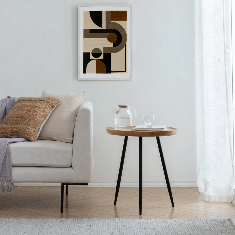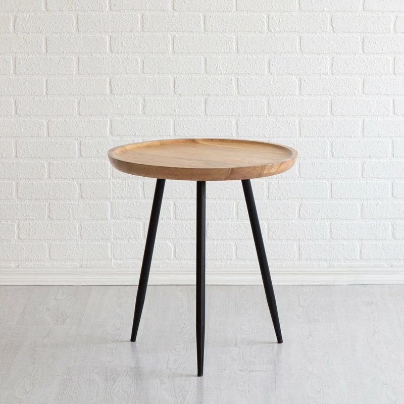 This side table never seems out of trend- so classic! Crafted from solid wood, the chunky top feels reliable for your favourite potted plant, lamp, or cold coffee. The tapered metal legs are angled just the right way to elevate those awkward corners. Expertly crafted by hand, it will fit perfectly in any modern home. Made of mango wood, the tabletop retains its organic energy and warmth. Itโs like a small connection to the natural world- a detail we love!