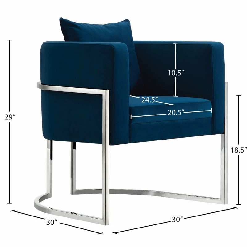 Elegant and eye-catching, the stunning navy velvet Pippa Accent Chair from Meridian Furniture is the perfect addition to any space.Rich Chrome Stainless Steel Plush Navy Velvet Contemporary DesignLight Assembly: Simply Attach Base