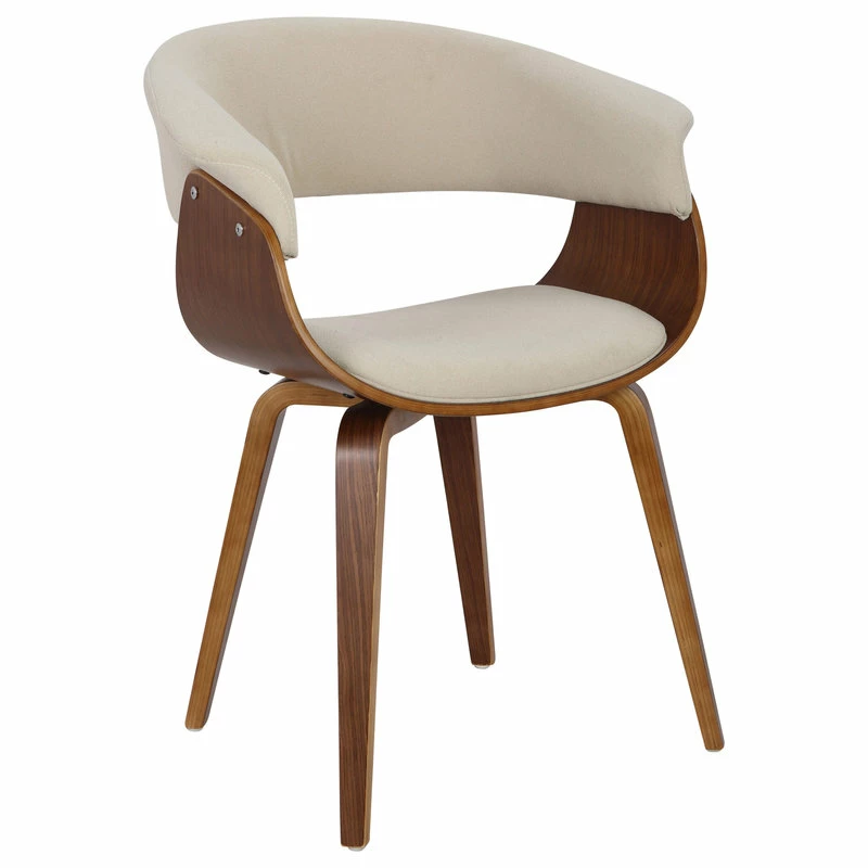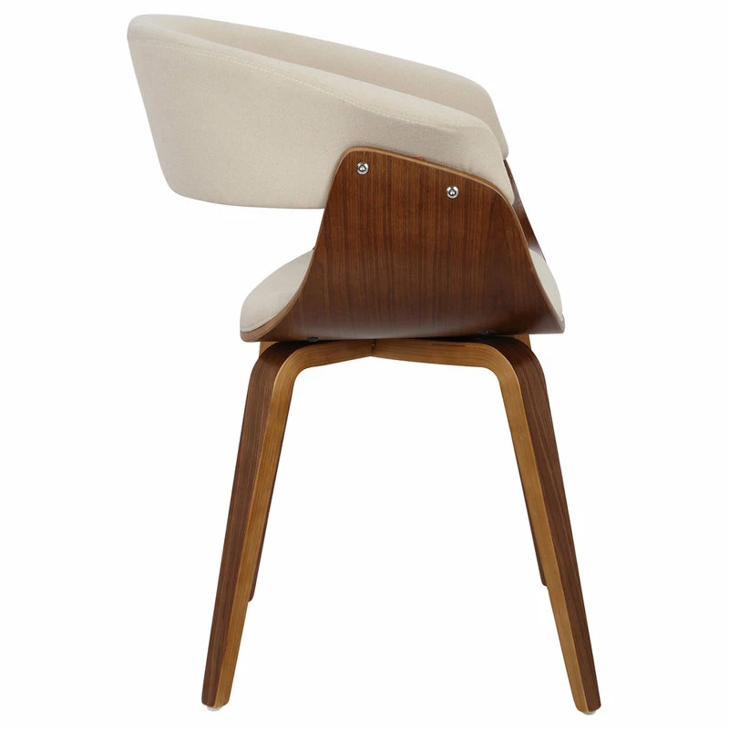 Bend the rules and break the mold with the Antonia. A swanky showstopper in the den or the dining room, this mid-century chair will have your guests doing double-takes as soon as they walk in. Curved wood accented by a fabric, cushioned seat and wraparound backrest offer both comfort and style. Stylishly exposed bolts and arched walnut legs round out its look to make for a unique piece thatβs nothing short of a knockout.