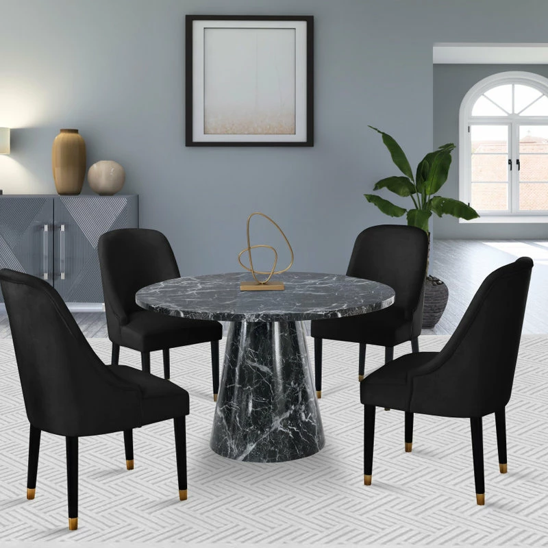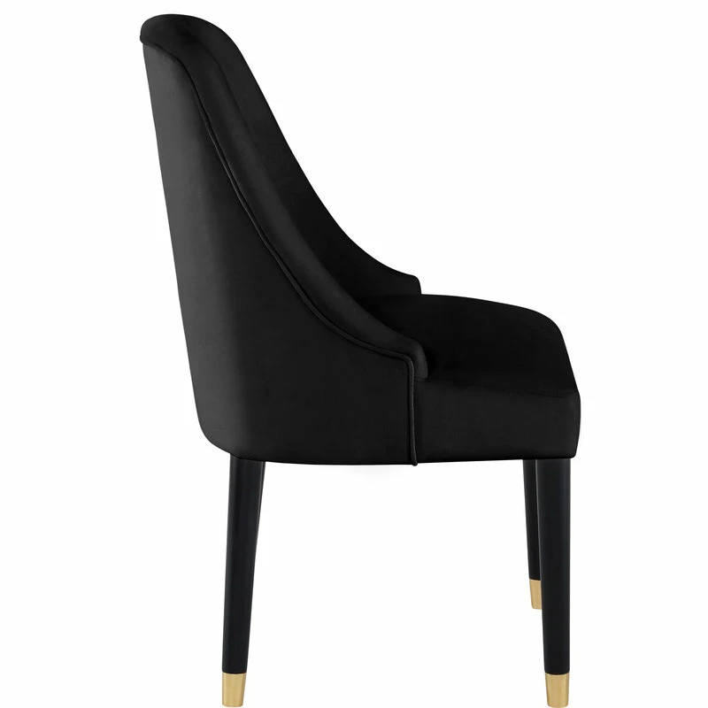 Turn back the kitchen clock with the Maisie. This mid-century dining chair is what happens when retro flair gets an updated dose of luxury. Elegant velvet wraps around its curved back, low-profile armrests, and well-cushioned seat while its sleek legs are punctuated with gold metal tips. A showstopper in any dining room, it has just enough flash to stand out with more than enough comfort to settle in.
