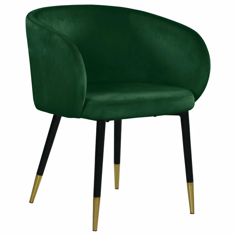 Bring home your new throne with the stylish Soho. Covered in lush velvet, this contemporary dining chair is as comfortable as it is durable. Elegant metal legs in black stretch down to gold-finished tips that accentuate any flooring. Guests will fall in love with its curved back and sides that envelope you in almost all-around cushioning. Sink into the Soho and you’ll find that no matter where you place it, luxury will be at the forefront.