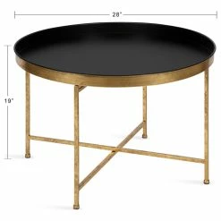 Best Pirce 😍 Uniek Celia Round Metal Coffee Table, Black/Gold 28.25×28.25×19 ✨