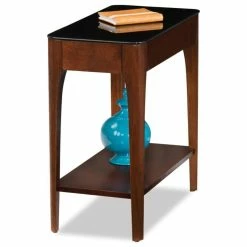 Discount 👏 Leick Home Leick Obsidian Glass Top Wood Narrow End Table In Chestnut Oak 🎁