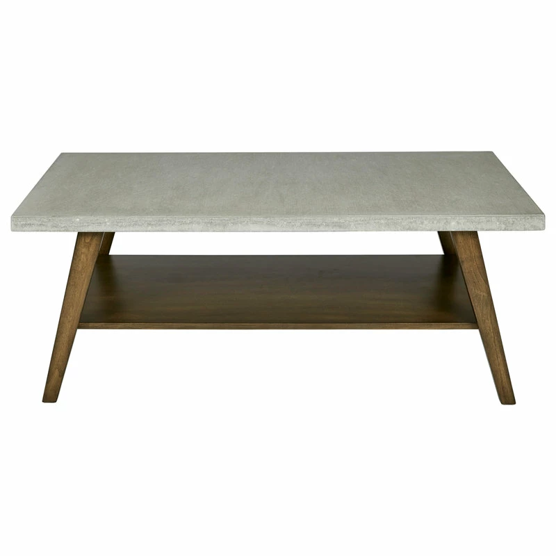 A concrete texture combined with sleek Mid Modern style. Some even may say it is the perfect combination. Auburn finished base is absolutely stunning. This cocktail features a concrete textured top and a spacious full bottom shelf.