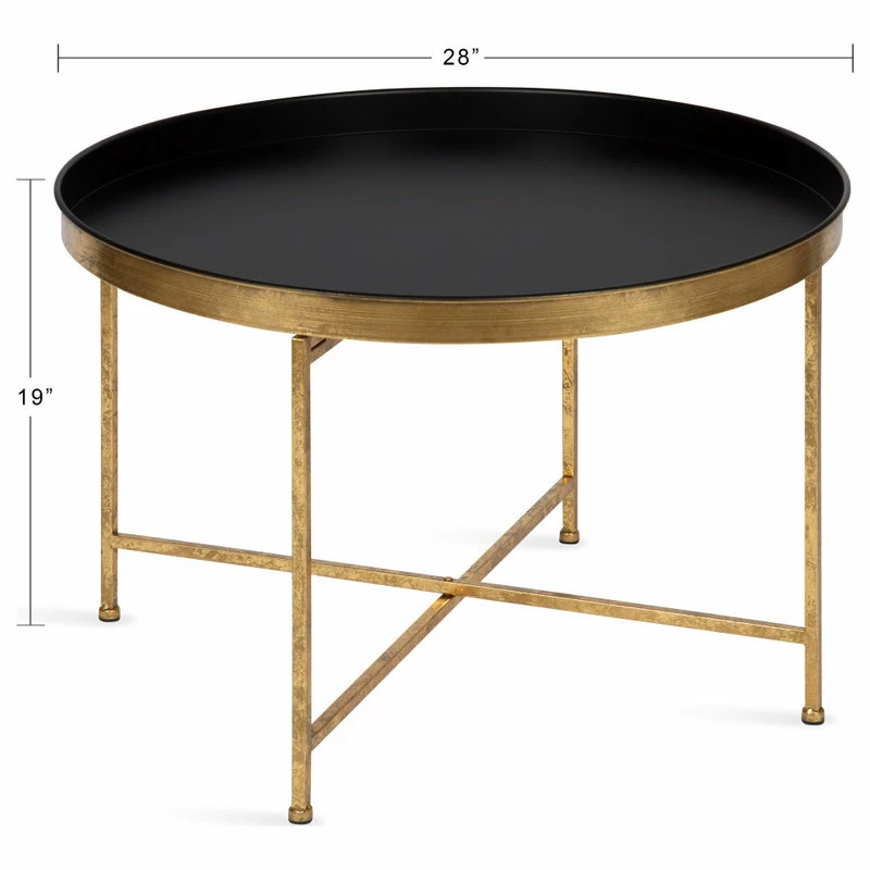 Add a glamorous conversation piece to your home that projects elegance with the Celia table. Inspired by modern design, the Celia table features a bold two-tone finish consisted of an elegant gold leaf tone on the frame and a black finish on the tabletop. This lovely pairing makes for a glamorous accent piece that serves as the decorative focal point for your living or entertaining space. The Celia table was made from 100% iron material, giving it a resilient quality and look. The overall dimensions of the Celia are 28 inches wide by 28 inches deep by 19 inches tall, making it the perfect surface for storage, display, and serving. It’s perfect for showcasing your prized keepsakes and decorative accents, storing much-needed household necessities, or serving your favorite cocktails at your next get-together. When you want to save space in the room, you can also remove the magnetic tabletop and fold the frame for quick storage. Whether you decide to place it in your entryway, living room, or bedroom, the padded footpads attached to each leg prevent your hard floors from damage like scuffing or scratches.