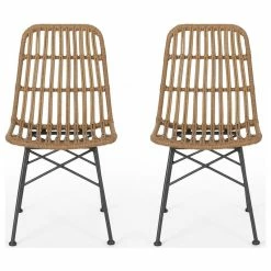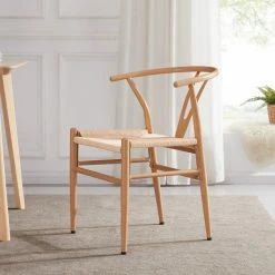 New 💯 Belleze Set Of 2 Weave Dining Chair, Mid-Century Metal Y-Shaped Backrest Accent Chair 👍
